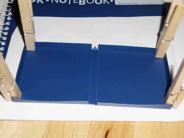 Pegamento de las pestañas a las ubicaciones correctas. Creo que es útil para unir las dos piezas mientras el pegamento está primera aplicada durante un minuto. Si desea hacer el vínculo más fuerte use tus alfileres de ropa para mantener las piezas Unidas por un período prolongado de tiempo.