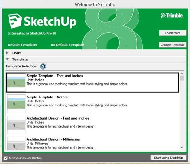 2.2 en la parte inferior derecha de la ventana, haga clic en "Empezar a usar SketchUp"