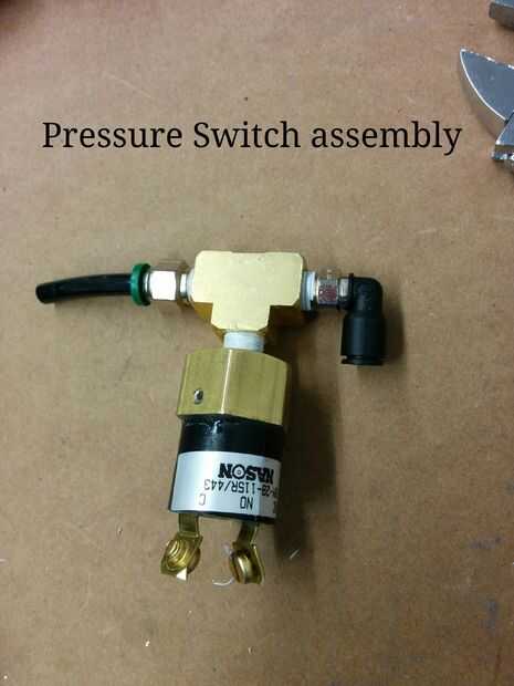 -Montar otra rosca 1/8" npt conector en T que tiene empuje para conectar las conexiones de ambos de los puertos de"fondo"dos y enrosque el interruptor de presión en el puerto de"top". (foto 16)