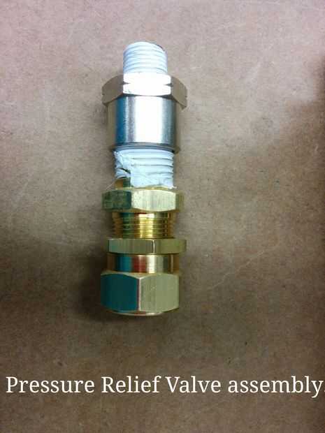 -Enrosque el conjunto de válvula de alivio de presión en el "top" del conector T de latón. (foto 10)