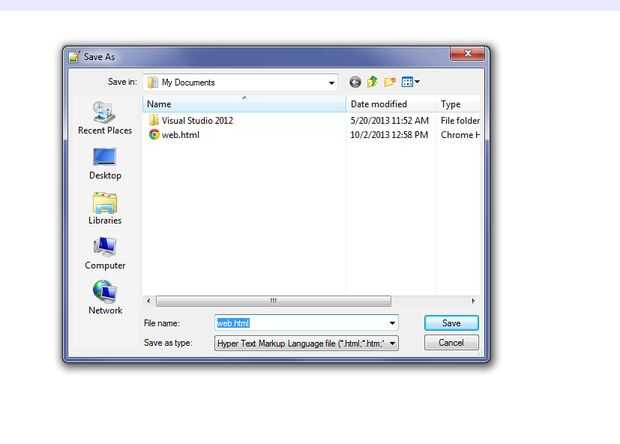 3. Haga clic en archivo -> Guardar como para nombrar y guardar el archivo. Guarde el archivo como un archivo HTML por fin el nombre del archivo con .html. Consulte el ejemplo a continuación para una mejor comprensión.