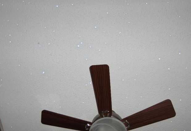 Me astilló por la textura del techo en algunos espacios, dejando unas manchas marrones de cartón alrededor de las luces. Esto era solamente perceptible si estaban mirando directamente a él, en la escalera, 6 pulgadas del techo. Estoy hablando de manchas de marrón. Esto me molestó así que 'fijo' que con una simple blanco.