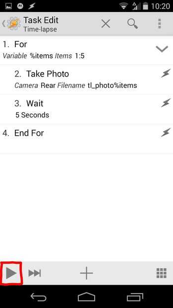 Ahora para tomar su lapso de tiempo, sólo tienes que configurar tu teléfono, andpress el botón de play en la parte inferior izquierda esquina. Espere hasta que se hace.