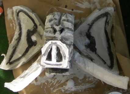 Para la cabeza de la marioneta de elefant, usé 4 piezas de espuma, una principal para la cabeza, dos piezas de espuma fina para los oídos y un pedazo largo de los dientes de Marfil. Pintura a base de todas las piezas excepto los colmillos fueron recubiertos con un acrílico gris claro como el color de la tierra. (trabajar en un lugar limpio y utilizar páginas de periódico para proteger su lugar de trabajo)