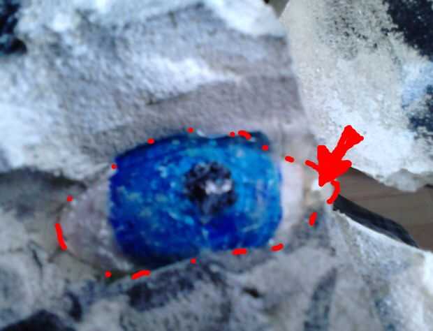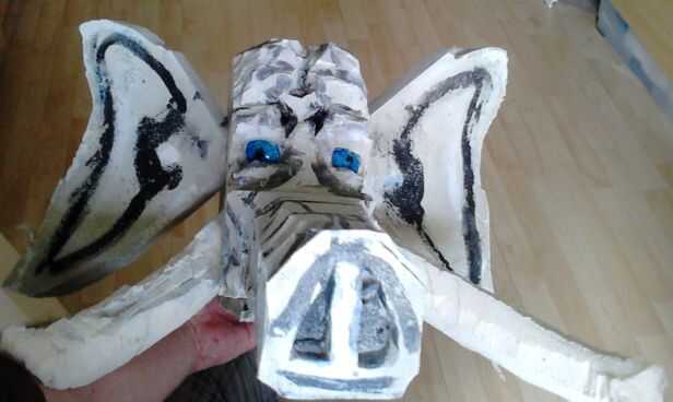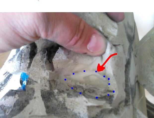 -Con la ayuda de un cortador necesitará cortar líneas de la espuma a los ojos (los puntos azules marcados en la imagen de abajo, el ojo derecho está ya en lugar).