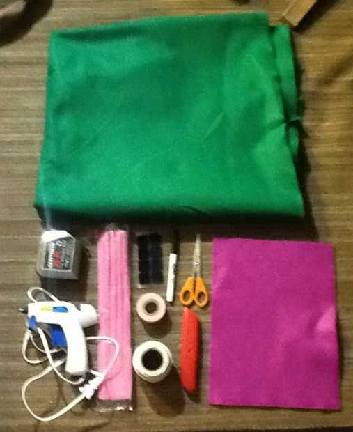 este traje era muy cómoda y super divertido! Pude bailar Hallo-semana con mi colega Alicia en el país de las maravillas personajes (y amigos).Paso 1: Materiales necesariosPara el traje:Traje rosaCortos de bicicleta morada1 yarda de tela rosa difusa (