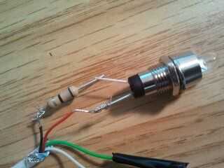 Nota: Después de completar paso 3c su cable rojo, LED, resistencia y cable negro deben hacer un circuito simple, en otras palabras debe ser en serie uno con el otro.