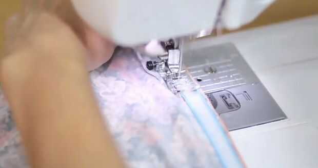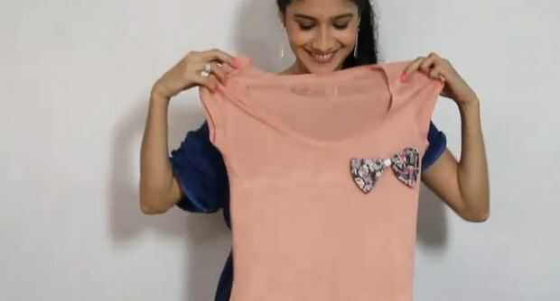 Ahora hay que unir la camisa y la falda con la ayuda de alfileres, coser con mucho cuidado esta parte.