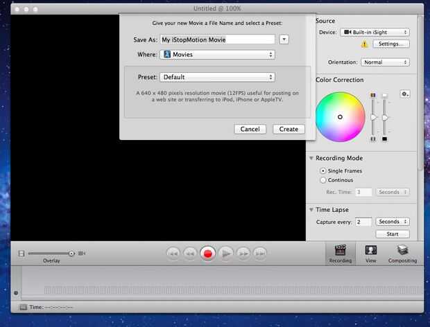 Cuando abres primero IStopMotion te das cuenta que tienes algunos ajuste para hacer antes de hacer la animación.