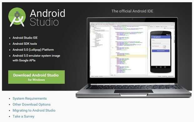 1. Ir a http://developer.android.com/sdk/index.html para descargar Android Studio.