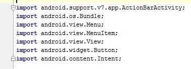 4. Haga clic en el + junto a la importación en la tercera línea de MainActivity.java ampliar las declaraciones de importación.