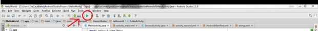 1. Haga clic en el símbolo del juego verde de la barra de herramientas en la parte superior de la ventana del estudio Android.