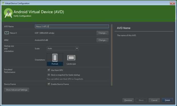 3. Seleccione una configuración de dispositivos como el Nexus 5 y haga clic en siguiente.