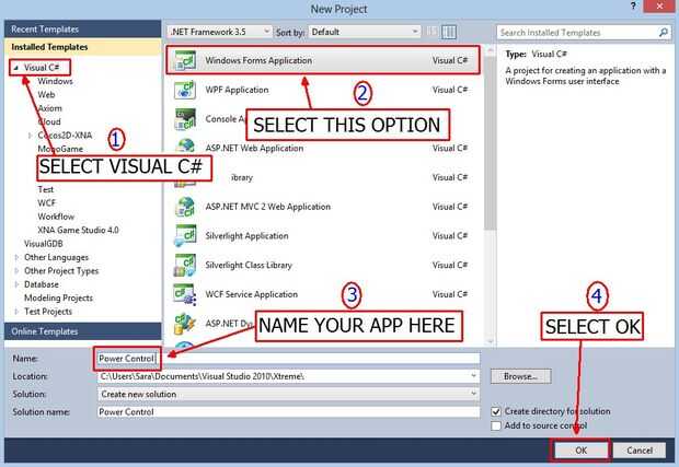 Ahora simplemente abrir visual studio y haga clic en "nuevo proyecto" y luego lo mismo. (yo estoy llamándolo "power control")