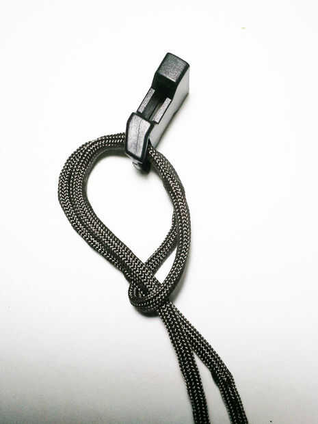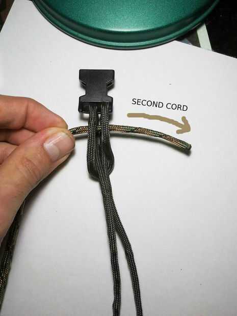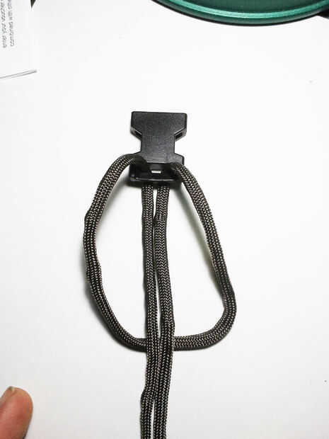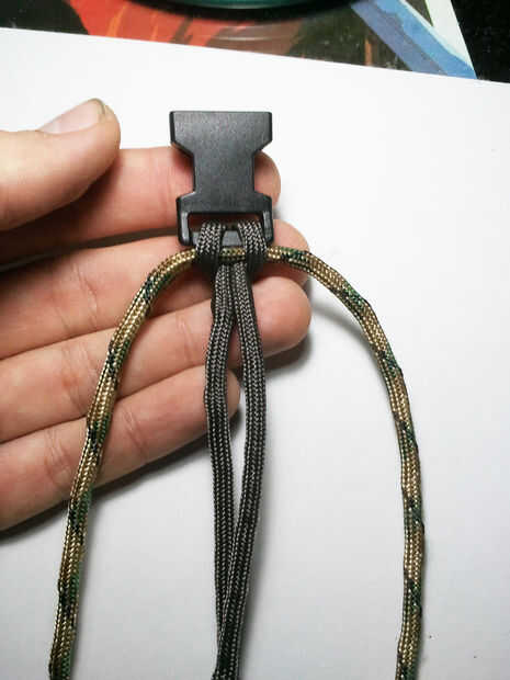 Así que vamos a empezar a tomar la hebilla e inserte el cable que preferimos. Quiero especificar que el nudo que hacemos es el nudo de serpiente acoplado (en el siguiente paso i a poner el enlace para verlo).
