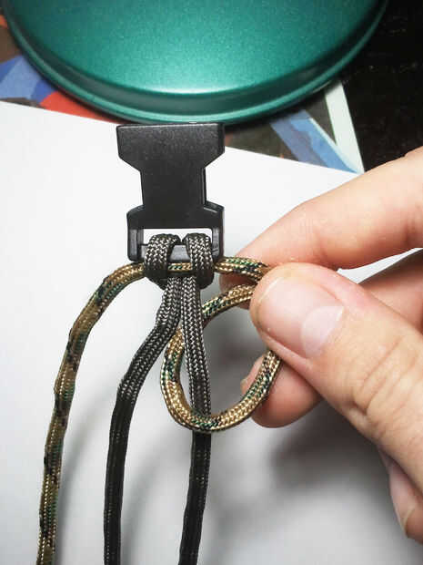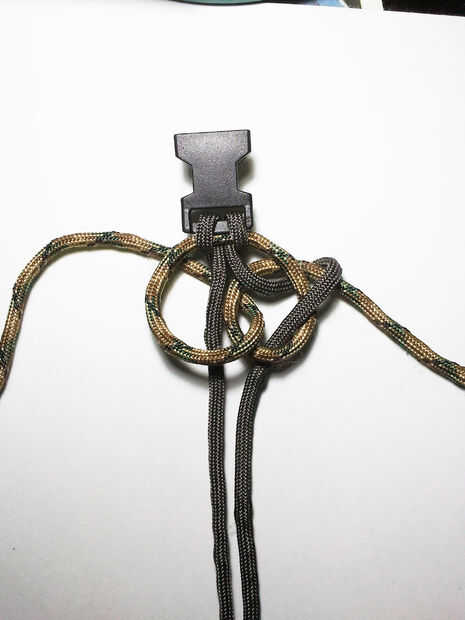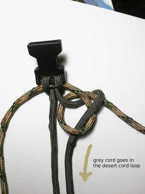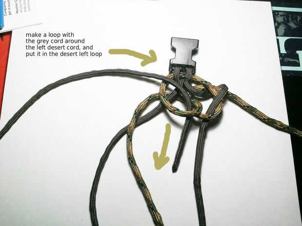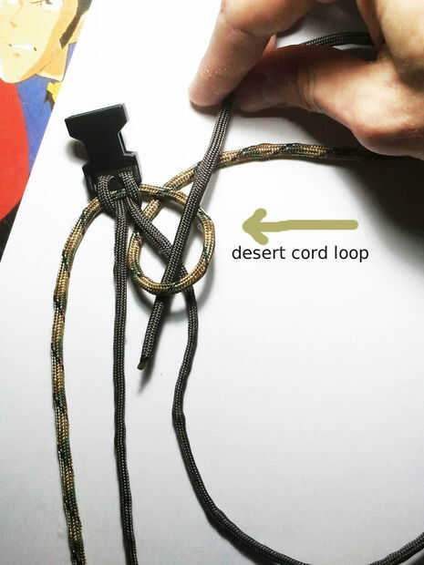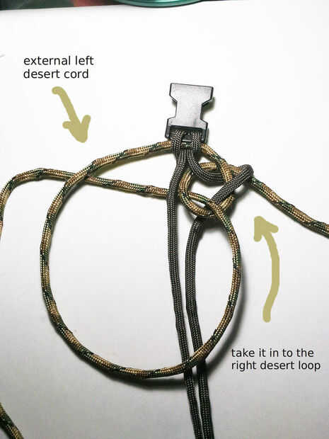 Ahora pasamos a la izquierda, y tomamos la izquierda externa cable, del desierto e inserta al lazo de cuerda derecha desierto, pero no ata totalmente.