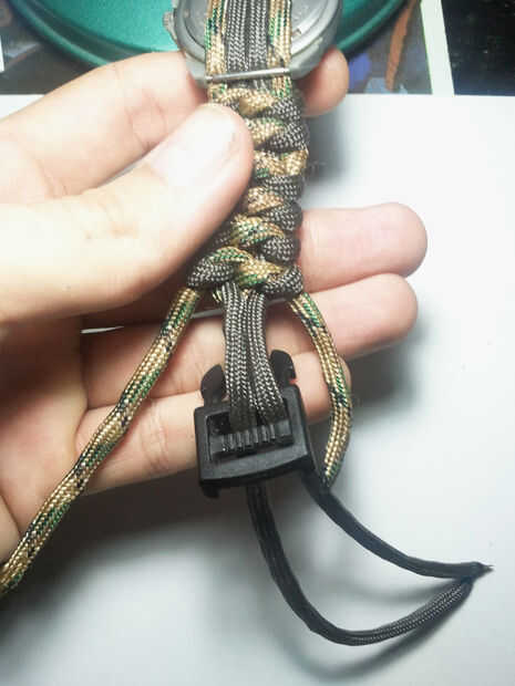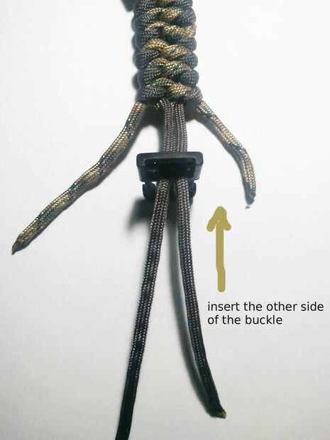 Primero insertamos la otra parte de la hebilla en los dos cables grises en el medio.