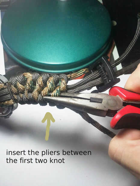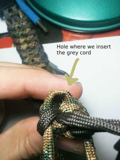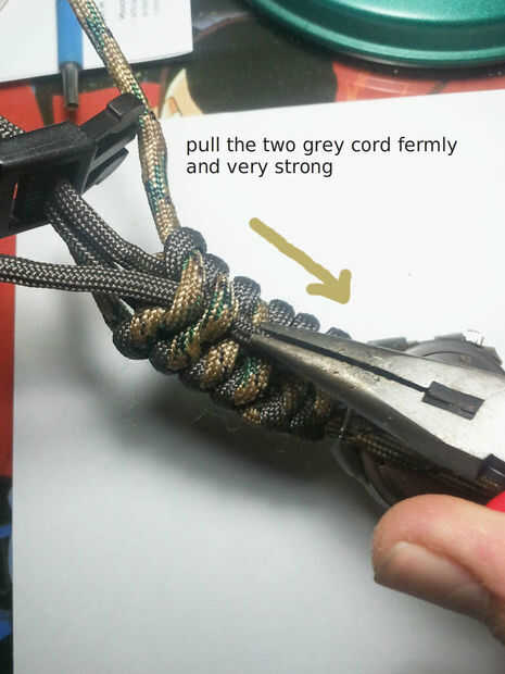 Antes de hacer el nudo de cierre tenemos pinzas para tirar de la cuerda, donde Inserte el gris. Preste atención a esto porque es importante entonces a atar muy bien, para evitar que la proximidad del cordón hacia fuera y relajar, así que paciencia en esta fase;).