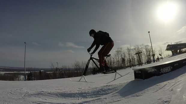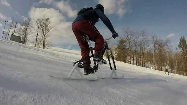 El funcionamiento de esquí-bicicleta 2.0 fue un paso gigante delante de Ski-moto 1.0. Pude con confianza esquí-bicicleta de descenso una legítima de esquí tan rápido como un típico esquiador o snowboarder. El esquí delantero cavó su borde en la nieve cuando giré el manillar y me permitió tallar vueltas amplias y parar cada vez que quería. Cada mejoría fue notable.