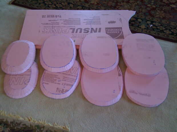 Corte la tabla en óvalos o círculos, o cualquiera que sea la forma de su cabeza de la mascota. Hay muchas maneras para cortar el tablero como navaja, Sierra caladora, y Sierra de calar. Cualquier tipo de sierra hace un lío. La manera más fácil, más limpia y más rápida es con un cuchillo caliente. La tienda compró cuchillos calientes son costosos y endebles. Hice mi propia siguiendo las instrucciones en instructables (caliente-cuchillo-de-plástico-corte!). En lugar de martilleo la punta, me compró un tornillo de cobre amarillo largo de tres pulgadas y martillado/archivado lo plano. Trabajó muy bien. Como cortar las capas de tratan de que la forma áspera de la cabeza. IMPORTANTE si la pieza es demasiado grande es fácil de hacer más pequeño, si la pieza es muy pequeña es muy difícil hacerlo más grande. Cuando usted corta las primeras piezas, hacen más grande que crees que necesitas. Otro Consejo es numerar las piezas, etiqueta de la parte superior e inferior. Así es fácil de poner juntos nuevamente en el orden correcto.