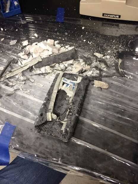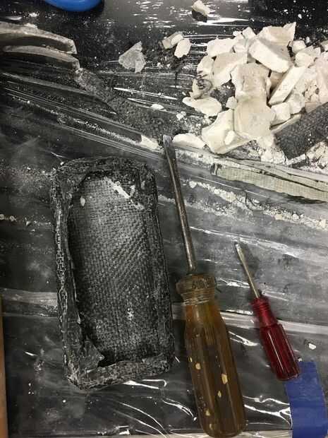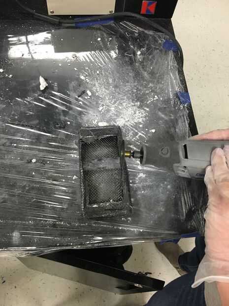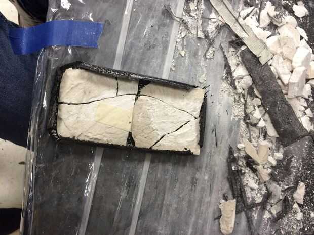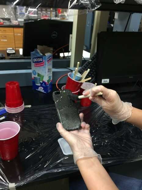 El siguiente paso es retirar el molde de yeso de interior de la caja de fibra de carbono. Tenga cuidado para no dañar el caso al tratar de eliminar el yeso.