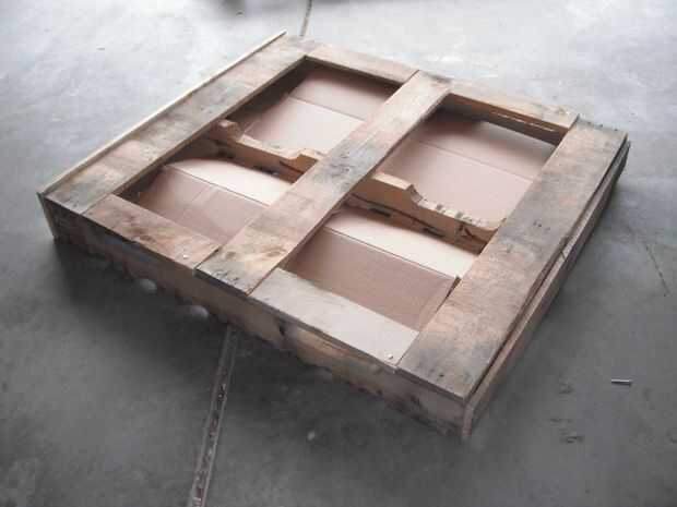 El interior de la plataforma de cama elevada con cajas de cartón, asegurándose de cubrir todos los agujeros que el suelo puede escurr a través de la línea