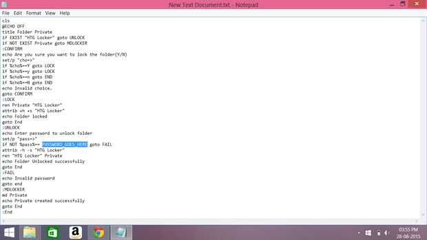 Cambiar el texto PASSWORD_GOES_HERE a la contraseña que desea establecer. Ahora seguir adelante y guarde el archivo como locker.bat.