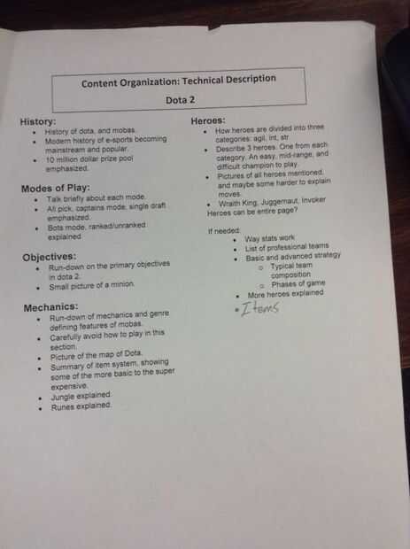 Lo primero que debe hacer con cualquier documento escrito es planificar el material que debe incluirse. Aunque nada en el plan original se acostumbra, es importante empezar a pensar sobre el documento conjunto antes de trabajar en piezas individuales. Es muy útil para echar un vistazo en otras descripciones técnicas para conseguir un asimiento en la "sensación" de cómo se ve una adecuada.