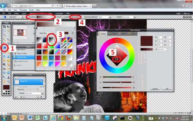 Ahora que se ha preparado el gradiente trazar una línea que se extiende desde el centro de la imagen 50% más allá de la imagen. Esto crea un gradiente que puede encoger hasta el tamaño adecuado.