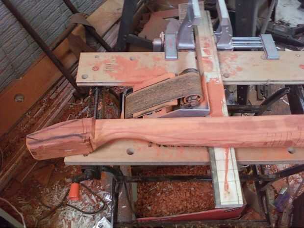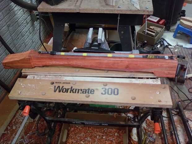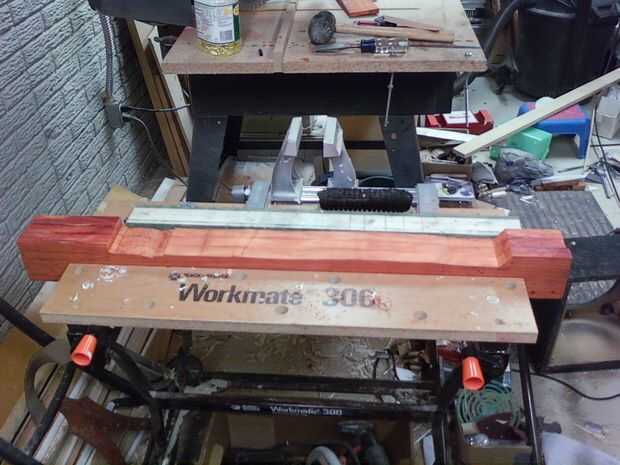 (El Padauk utilicé era más grueso que el Aspenwood que usé para el primer cuello en blanco. Sólo requiere este segundo cuello blanco 3 piezas pegados al lado del otro para crear las dimensiones adecuadas del cuello.)