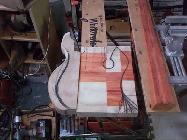 1. aprovechar la experiencia que obtenida elaboración y corte de su primer cuerpo de la guitarra baja. Este conocimiento resulta muy útil ahora que han experimentado con un diseño de cuerpo antes de cortar.