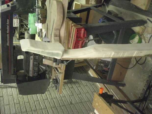 5. con estas mediciones hechas cortar exceso de madera del cuello en blanco con su sierra de cinta.