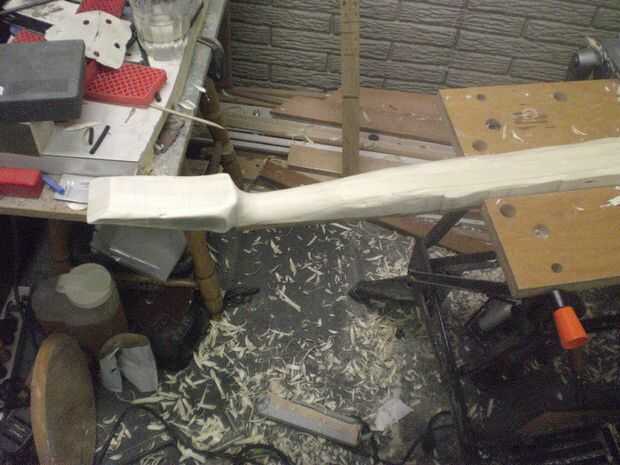 . Ahora que tienes tu blanco cuerpo, lamentó, es hora de áspero hacia fuera y forma. Para esta secuencia de pasos se necesita su sierra de cinta, lijadora orbital, lijadora de banda, archivos y raspadores y también un cincel talla si tienes uno.