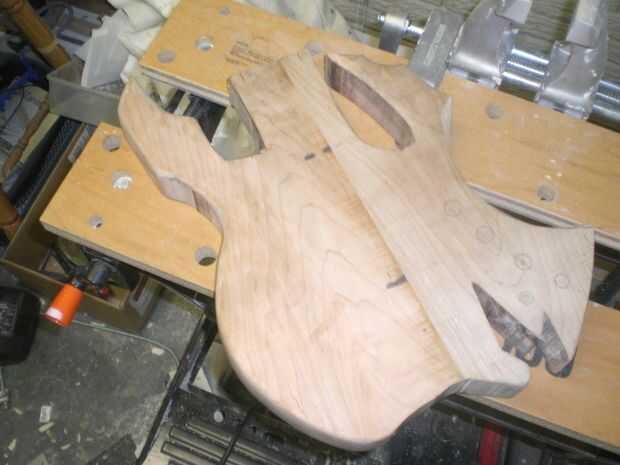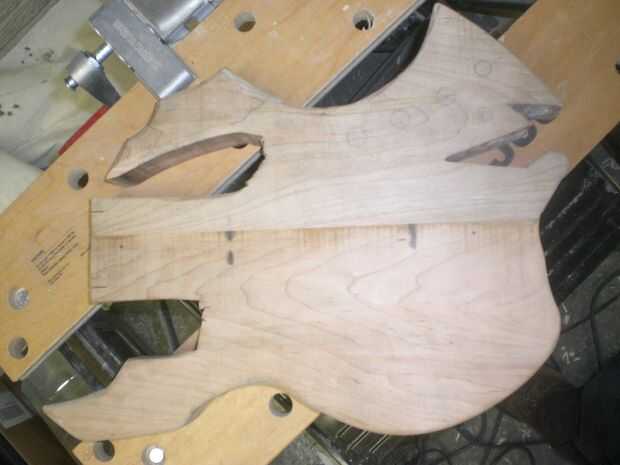 1. al diseñar el patrón para el cuerpo en primer lugar tener en cuenta donde el cuello se ser pernos en. Esto es importante porque al final del diapasón debe ser exactamente de 24 pulgadas. Usted tendrá que tomar en consideración las restantes 10 pulgadas hasta el puente que se completa la escala de 34 pulgadas. Así que básicamente la longitud del cuerpo debe tener suficiente espacio para el perno correctamente en el cuello dejando todavía espacio (10 pulgadas) para ampliar hasta el puente. Va a ser de ti y de tu diseño en cuánto espacio que desea dejar debajo de donde se va a montar el puente. También al crear el diseño de tomar una decisión sobre qué tipo de pastillas va a utilizar. Las pastillas se montará finalmente dentro de los 10 pulgadas por debajo de los trastes y en donde estarán las cuerdas.