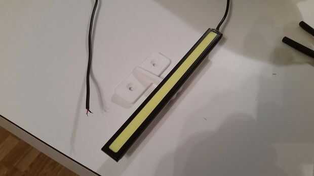 -12 VDC tira de LED, puede encontrarse en eBay por unos $5 un par. Comúnmente utilizado como luces de niebla en los coches, estos miden aproximadamente 170 mm x 15 mm x 3 mm.