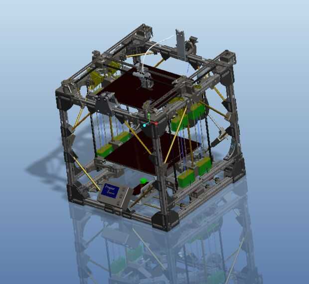¡ Felicidades! Ha creado su primera compilación de impresora "Proyecto geométrico". Ahora es la hora de mostrar su más grande 3d impreso impresora y pone aún más de significado detrás de la idea de una máquina de auto replicar! Esta impresora no es sólo una prueba de concepto que se puede crear una impresora de tal tamaño mientras utiliza impreso piezas, es también una pieza de gran escaparate para la evolución de la fabricación aditiva y un elogio a la industria de prototipado rápido!