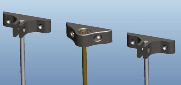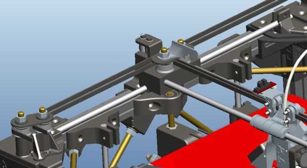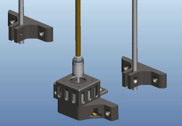 -"z_axis_bearing_guide.stl" (1), casas 608 cojinetes para asegurar la varilla de 8mm roscado se mantiene en su lugar y concéntrico con respecto al motor z. Hay espacio para dos de estos por cada lado (para un total de 2 por lado), sin embargo, la superior es un mínimo si sólo con 1 por lado.