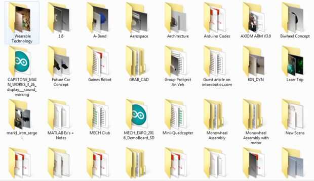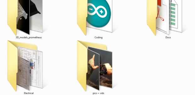 Ejemplo de nombres de carpeta: eléctricos, mecánicos, codificación, documentos, fotos + vids y así sucesivamente