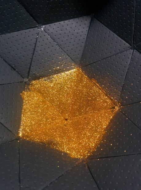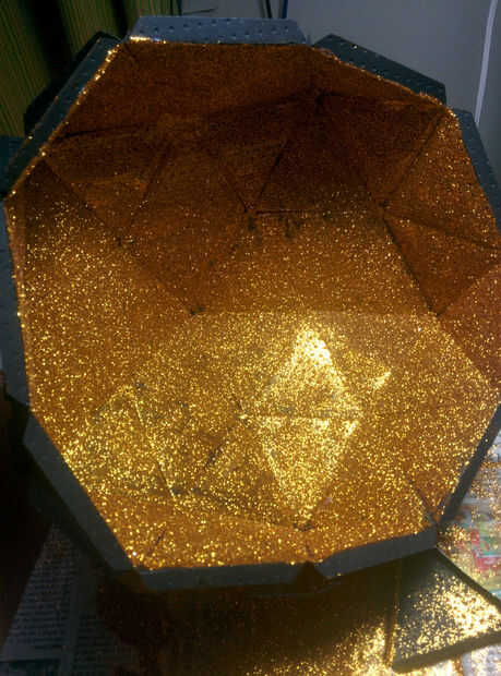 No quiero pintar dentro con un color claro u oro, opté por cubrir la superficie con brillo dorado, ahora ¿por qué? Porque simplemente rocas de negro y oro :D.