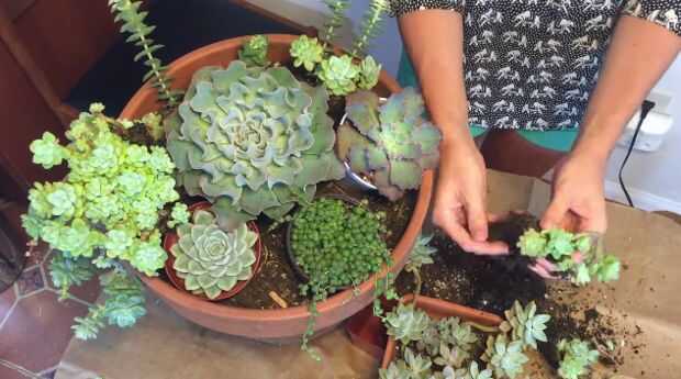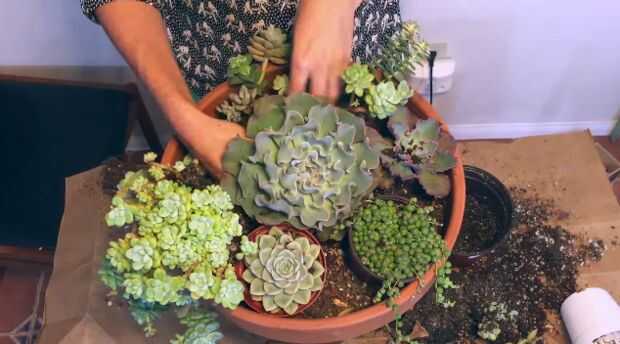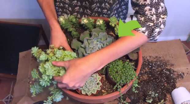 Crear montículos de tierra y plantar las plantas suculentas en ellos. Todo hundirá un par pulgadas una vez plantados, por lo que esto ayuda a mantener tus hermosas plantas por encima del borde de la jardinera.