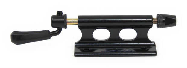Para el soporte de montaje delantero, decidí fijar una montura de horquilla en una base de madera triangular para conectar a la horquilla de la bicicleta. Una montura de horquilla es un mecanismo de liberación rápida que (cuando está cerrado) asegura el tenedor para lo que el montaje se sujeta a. Una imagen puede verse en las fotos. Me resta la altura de montaje de la horquilla y utiliza algunos trigonometría para diseñar una base de madera para el soporte de horquilla para sentarse encima de.