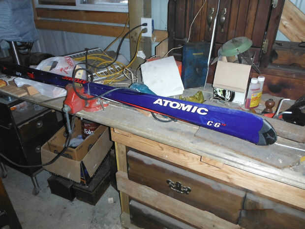 Para enganchar el esquí al soporte, me coloca el soporte en el esquí con respecto a la línea media determinada en mi diseño y que el eje de la montura de horquilla era perpendicular a la línea de centro del esquí. Utilizando un marcador permanente, había vinculado a las líneas encima de la estación de esquí donde acopla con el 2x4s. Con la base aún sentado en la estación de esquí en la posición correcta, tuve hasta un tornillo de la cubierta para el esquí y el soporte para determinar dónde se conduzca en. Quería que la cabeza del tornillo para quedar al ras con la parte inferior del esquí para reducir al mínimo el rozamiento de deslizamiento adicional, pero también no quería que la punta del tornillo sobresalga de la 2 x 4. Una vez que determine la posición correcta de los tornillos, usé un marcador para marcar los puntos en el lado de la estación de esquí donde que sería perforar. Luego perforé dos agujeros para cada pata del soporte hasta la estación de esquí. Para determinar la ubicación exacta de los orificios en las patas de madera del soporte, perforé los tornillos a través de la estación de esquí justo lo suficiente para localizar donde tocó la pierna de soporte. Una vez todos los agujeros fueron perforados, los tornillos de la cubierta fueron hundidos al ras para arriba a través de la parte inferior de los rieles y en las patas del soporte.