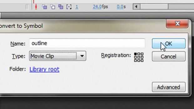 Convertir la barra de carga del esquema a un clip de película. Elija la herramienta Selección en el menú herramientas y haga doble clic en el rectángulo para que el esquema entero seleccionado. Hit F8 para que aparezca la ventana de "Convertir en símbolo". Cambiar el nombre de "esquema" y cambiar el tipo "Clip de película." Haga clic en Aceptar.