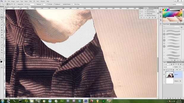 este paso tomará tiempo y delicadeza trabajo copiando piezas entonces hacen que moverlos debajo de la capa hasta que creas suficiente para llenar el espacio a continuación, utilizando el punto Pincel corrector para corregirlas costuras de la herramienta de selección. La herramienta para clonar, herramienta de selección y el Pincel corrector punto serán tus mejores amigos aquí y realmente no existe una manera incorrecta para hacer esto sólo su mejor esfuerzo y hacer referencia a las fotos abajo y trabajo poco a poco.