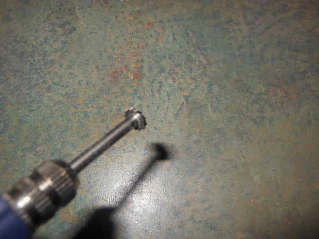 Usando la herramienta rotatoria y la pequeña hoja de sierra, en un extremo de los 11 1/2 pulgada pedazo de tubo,