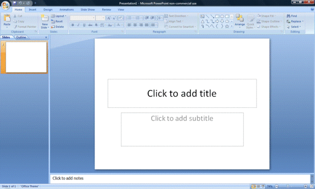 Cuando ejecutes el programa PowerPoint, puede le pedirá que elija qué tipo de documento que desea crear.  Decide crear una presentación en blanco.  Si no te pido esto, automáticamente se lanzará una presentación en blanco.