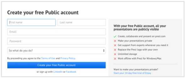 Paso 1: Primera parte: creación de una cuenta en Prezi
