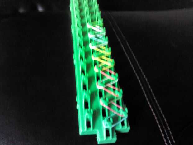 Esta es la pulsera como se verá cuando esté terminado. Yo recomiendo usar 3 colores diferentes para esta pulsera. Antes de poner las bandas en el paso siguiente Asegúrese de que doble todas las bandas, si crees que me refiero a hacer una banda de la