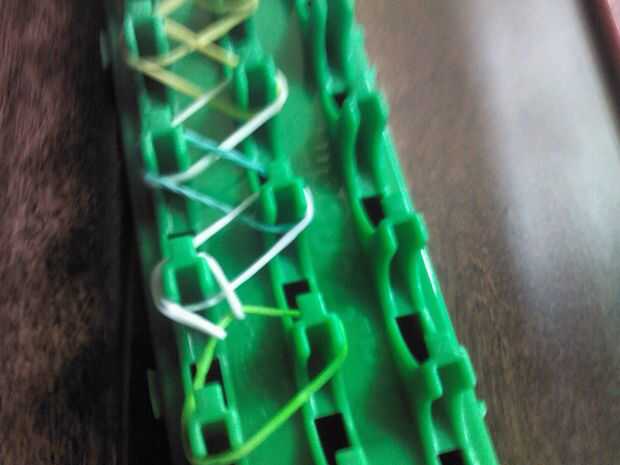 Esta es la pulsera como se verá cuando esté terminado. Yo recomiendo usar 3 colores diferentes para esta pulsera. Antes de poner las bandas en el paso siguiente Asegúrese de que doble todas las bandas, si crees que me refiero a hacer una banda de la