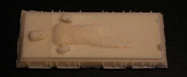 Opté por ser perezoso y sólo utilizó el modelo que fue producido por la impresora 3D, texturas y todo. Los bordes y el rafting requiere algunas limpieza y usé mi tablero de esmeril de diamante para tomar el cuidado de los detalles. Aquí está el molde madre final después de eliminar el rafting y lijado de las superficies alabeadas.